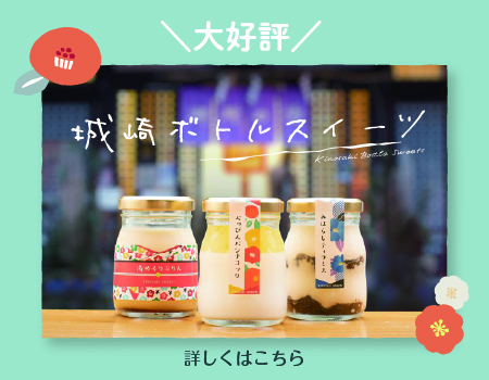 私たちの地元「但馬」には、お菓子の神様「田道間守命(たじまもりのみこと)」を祀る「中嶋神社」があります。 古より豊穣なこの地から日本のお菓子の歴史が始まりました。 「空腹を満たすだけではない、心を満たす食べ物」。それがお菓子の始まりでした。 私たち「城崎スイーツ」は、菓祖の町で生まれ、育まれたことを誇りに、これからも「心に届くお菓子」をお届けしていきたいと考えています。